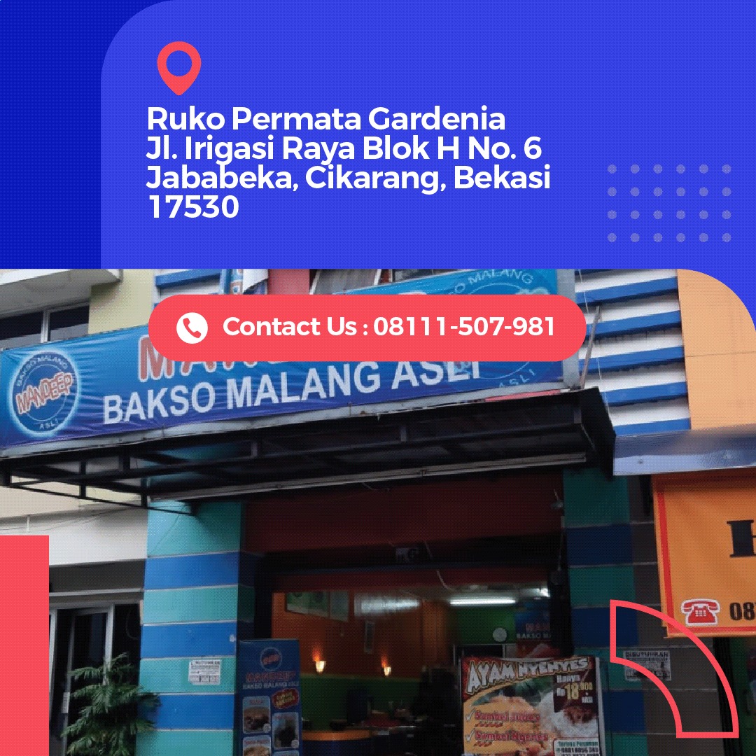 Alamat : Ruko Permata Gardenia, Jl. Irigasi Raya Blok H. No. 6, Jababeka, Cikarang, Bekasi 17530