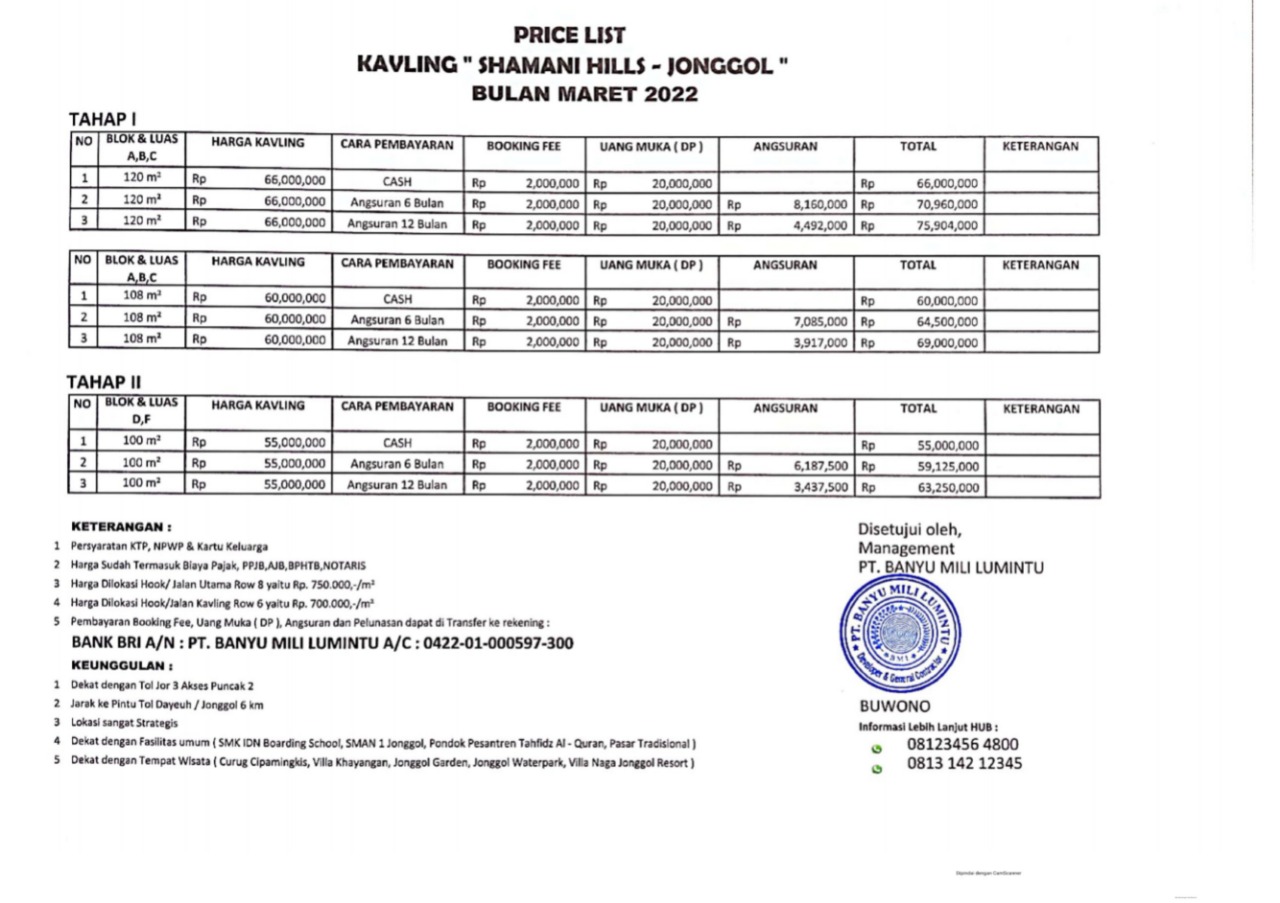 Harga permeter : Rp. 550.000,-