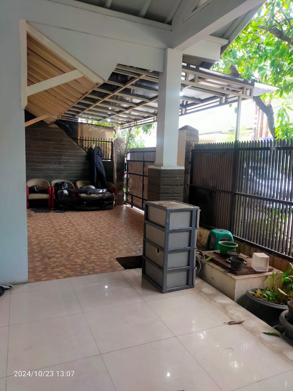 Teras depan, mesin jetpump, meteran pdam, pagar tertutup aman