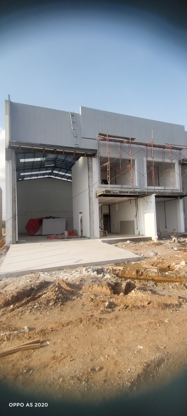 Spesifikasi : • Pondasi Mini Pile • Bata Ringan,Plester,Aci,Cat • Atap Spandek,Rangka Baja IWF,CNP • Lantai Beton Finish K300 (Area Gudang) Homogenous Tile (Area Kantor) • Kusen Aluminium • Plafond Gypsum,Rangka Hollow/Setara • Sanitair American Standard/Setara • Air Bersih Jet Pump • Daya Listrik 6.600 va
