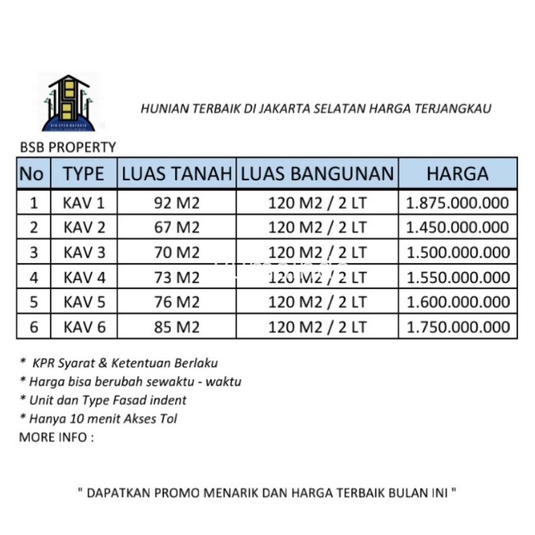 Dijual Murah Rumah Cluster di Kahfi 1 Jagakarsa Jakarta Selatan
