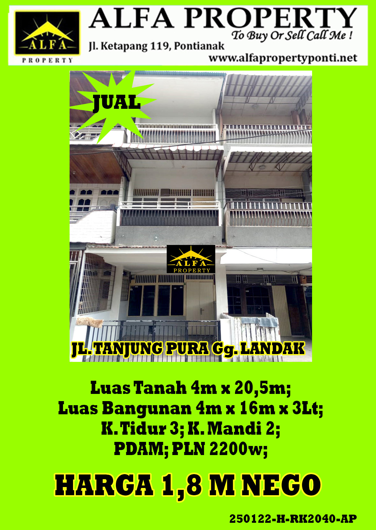 Luas Tanah 4m x 20,5m