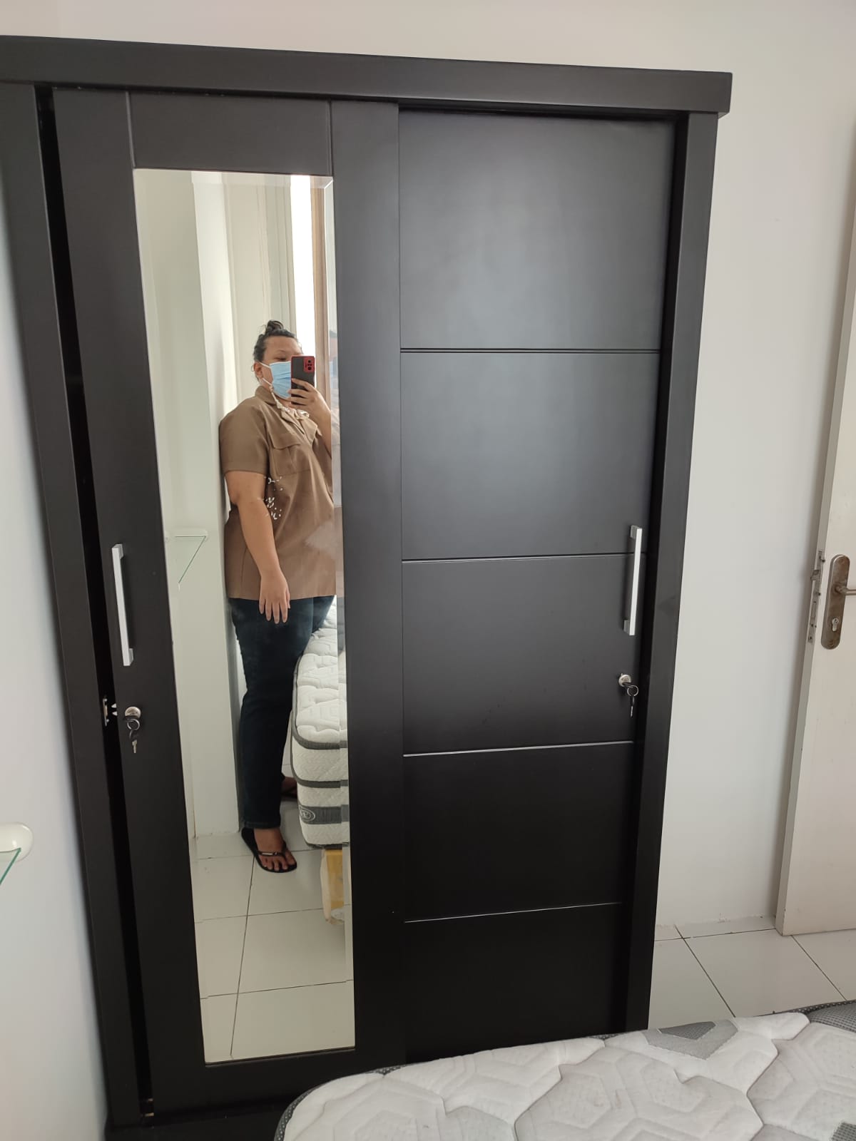 A. Master Bedroom: Queen size bed (1), AC (1), lemari pakaian (1), kaca dandan (1)