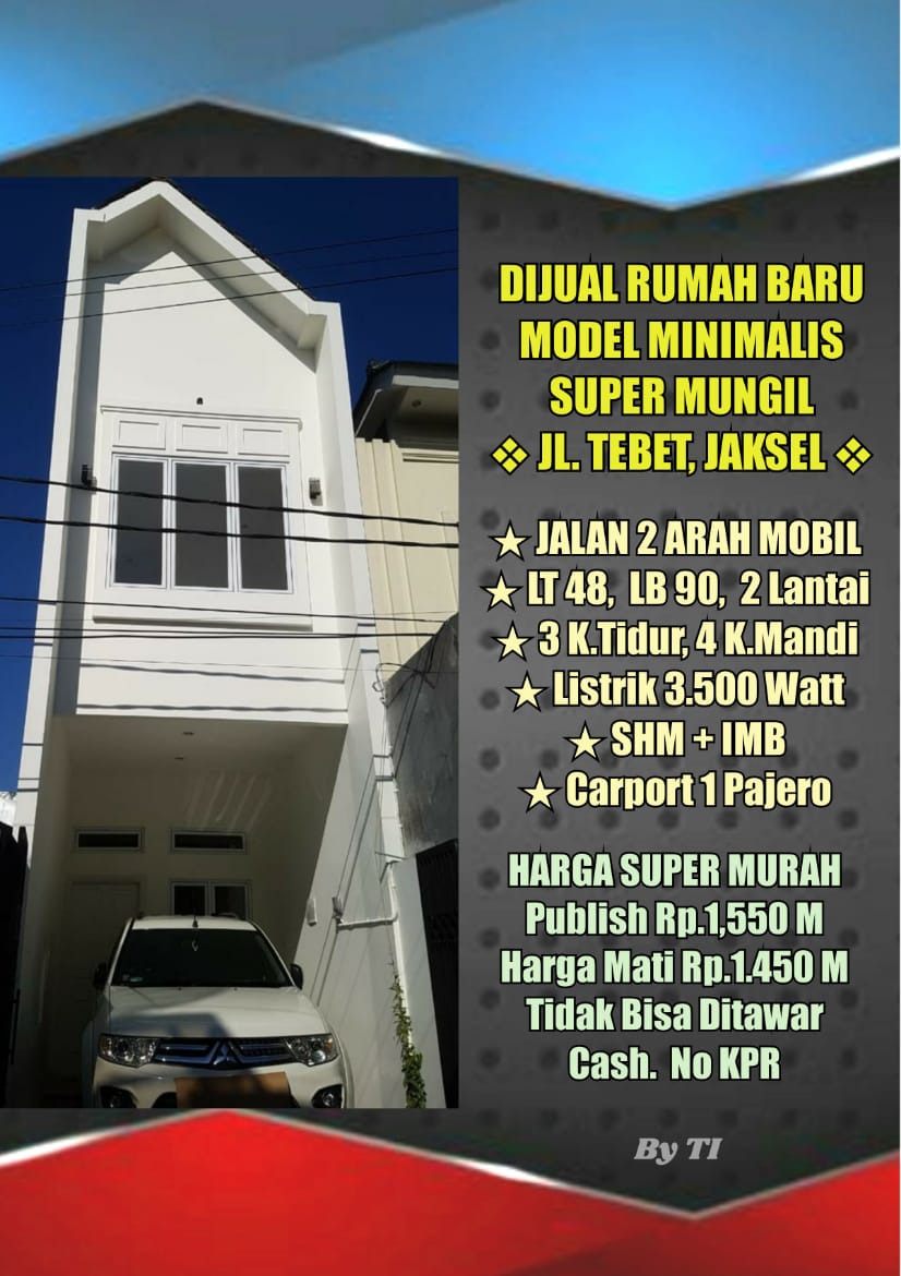 SOLD OUT Dijual Rumah Baru Minimalis Di Jln Tebet Utara Jakarta Selatan