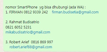 nomor SmartPhone yg bisa dhubungi (ada WA) :