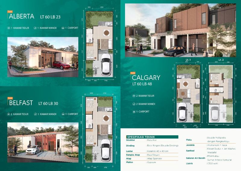Calgary adalah tipe rumah di kawasan Citaville Parung Panjang dengan detail: Bangunan 2 lantai berdimensi 5 x 12 m. 2 Kamar tidur beserta 1 ruang tamu. 2 Kamar mandi dan disertai carport yang cukup untuk parkir 1 unit mobil dan 1 sepeda motor.