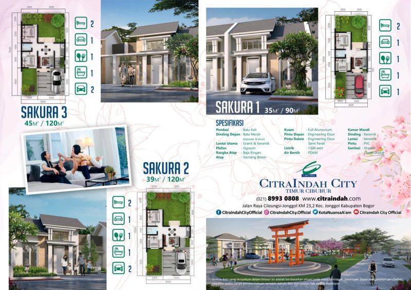 Fasilitas Lengkap. Asri. Sakura 3, 45/120, 8×15. CitraIndah City. Tersedia rumah contoh. Selangkah ke Fresh Market. Rumah 2 kamar tidur.