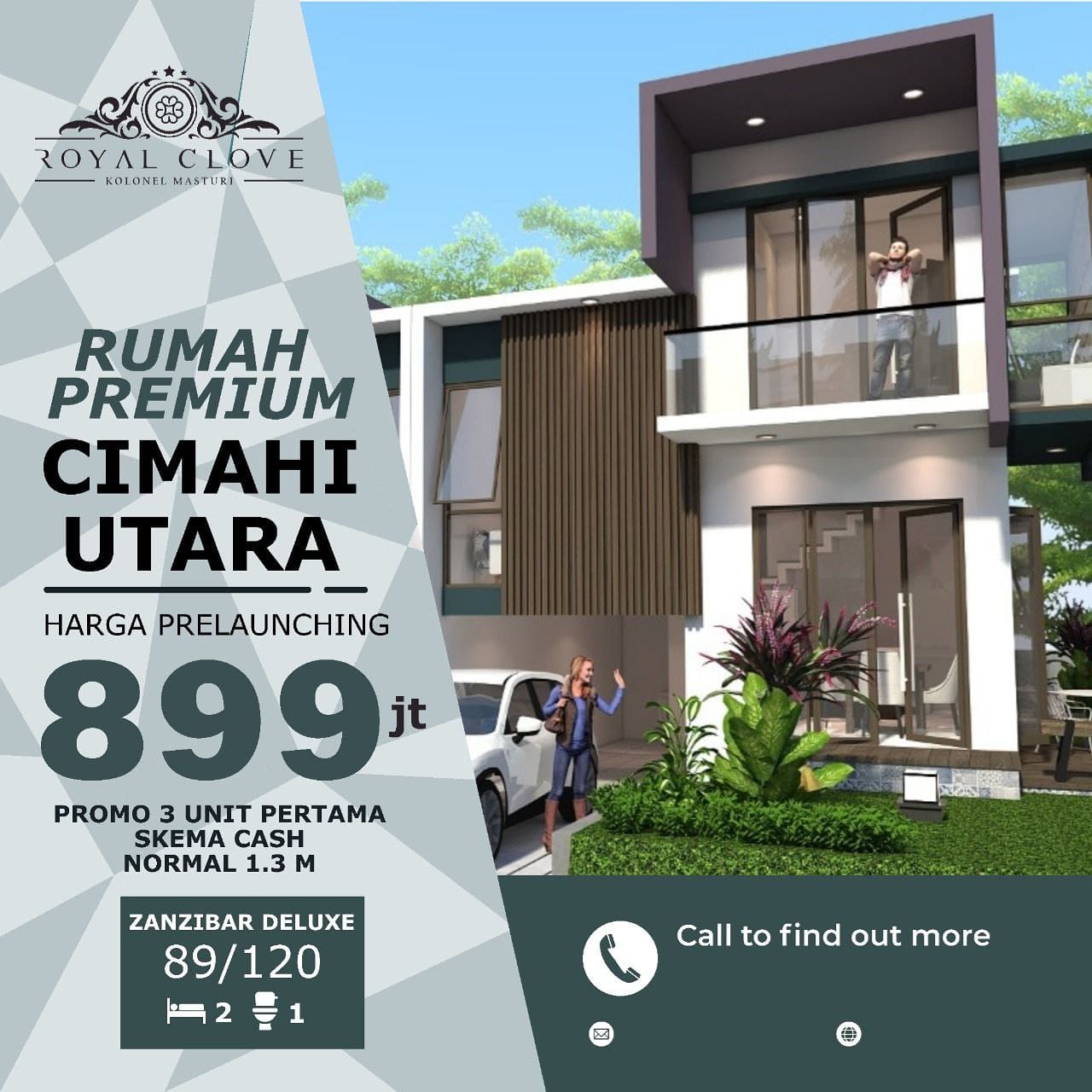2. Tipe Zanzibar Deluxe (89/120) Harga Prelaunching 889 Jt-an (harga normal 1,3 M)