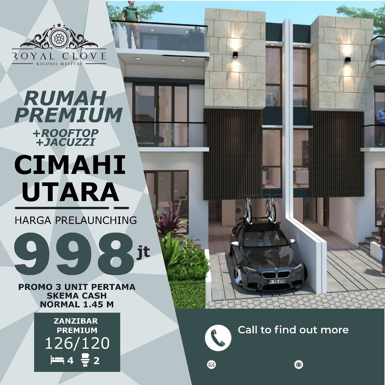 1. Tipe Zanzibar Premium (126/120) , Harga prelaunching 998 Jt-an (harga normal 1,45 M)