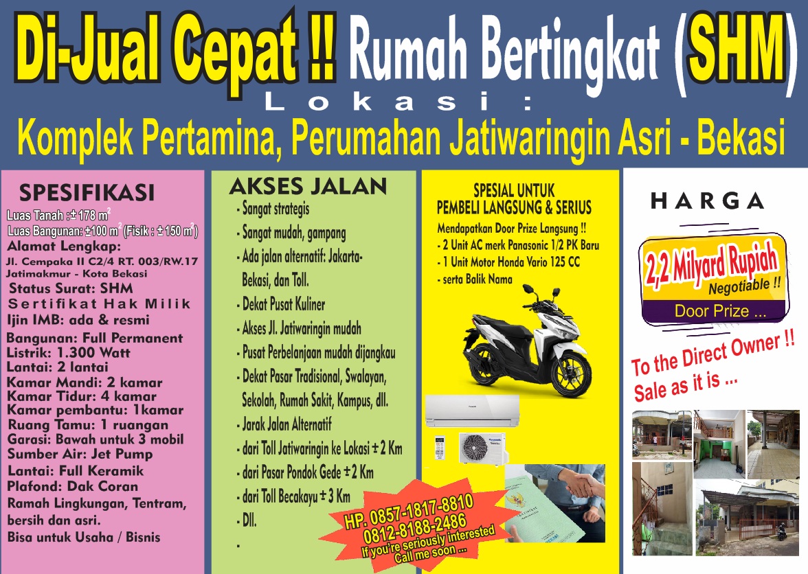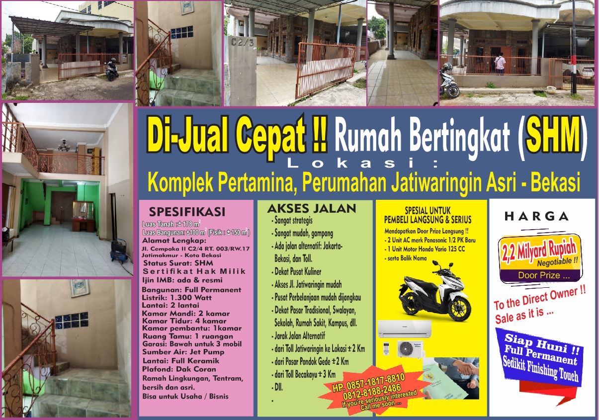 DIJUAL CEPAT RUMAH BERTINGKAT SHM SANGAT STRATEGIS KOMPLEK PERTAMINA