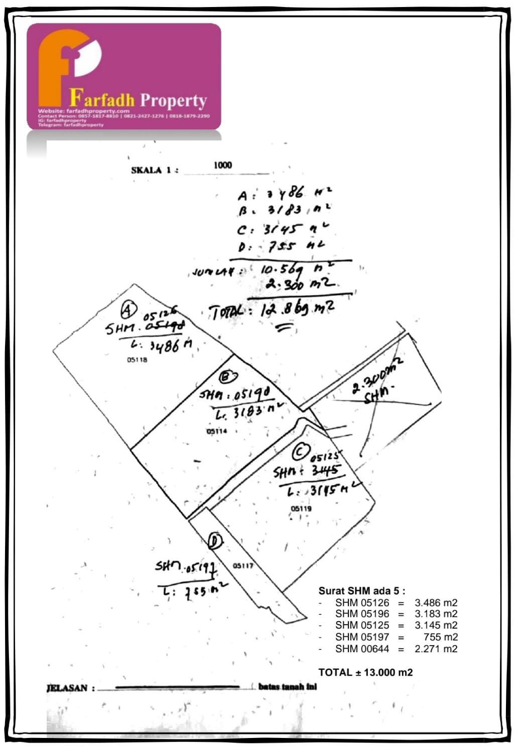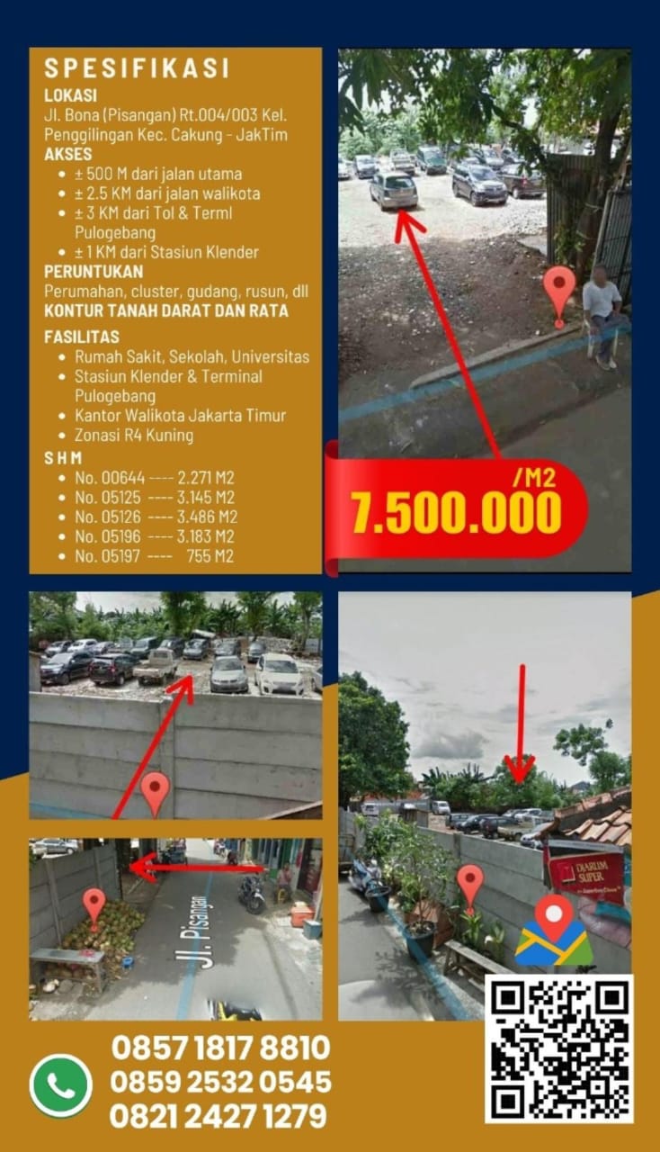 Harga Rp 7.500.000,- -/m2( Permeter)