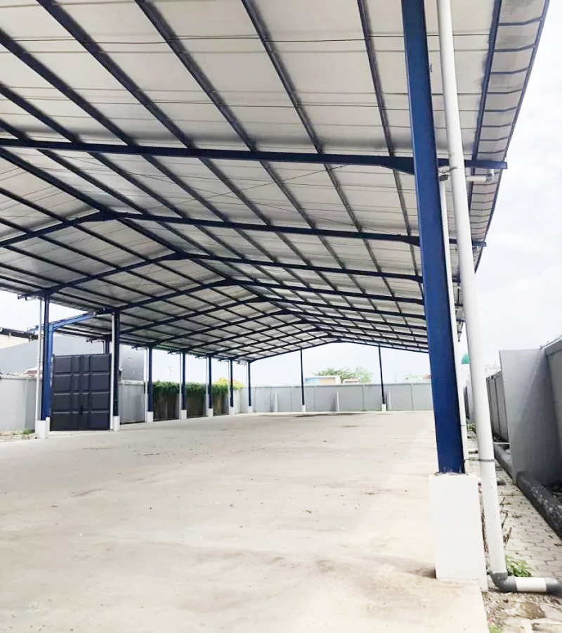 - Luas Bangunan: 2550 m2 (Gedung 1200 m2 + Gudang 1350 m2)