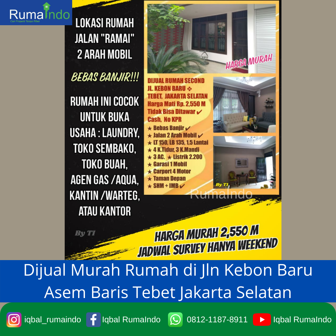 Dijual Murah Rumah di Jln Kebon Baru Asem Baris Tebet Jakarta Selatan