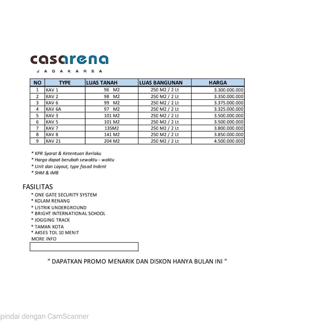 - Fasilitas Cluster : Kolam Renang, Jogging Track, Taman Kota dan Sekolah Bright International School