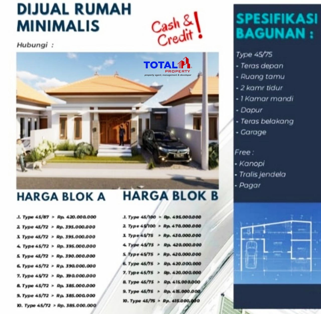 Luas Tanah mulai 72, 75, 87 dan 100 m2