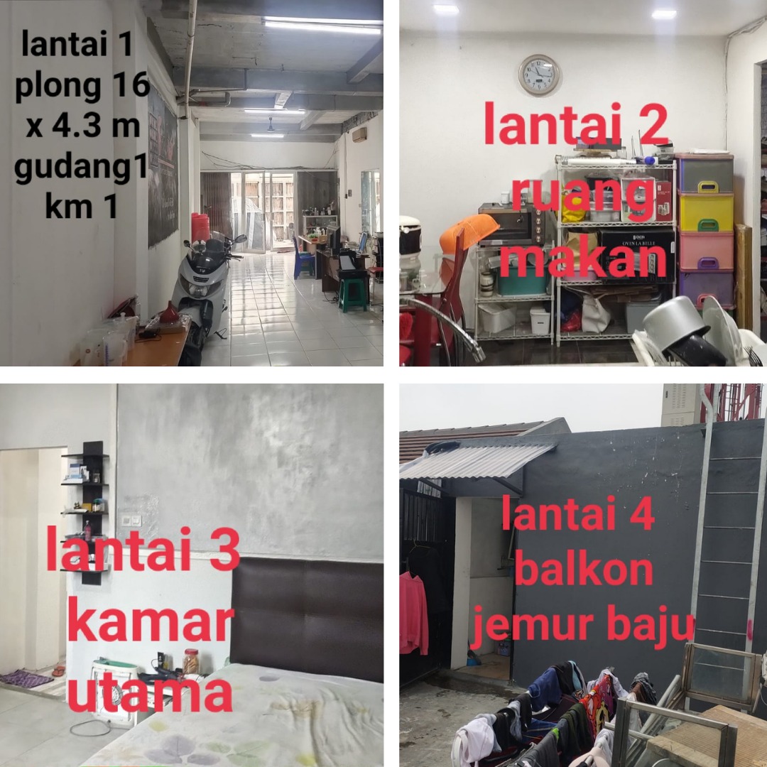 - Lantai 4: 1 kamar tidur + 1 kamar pembantu + 1 kamar mandi.