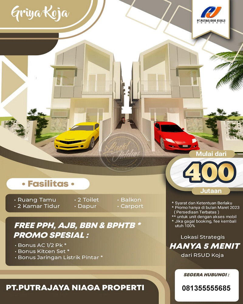 Dijual Rumah Baru 2 Lantai di Cluster Griya Koja Jakarta Utara Dekat RSUD Koja, Dekat RS Mata JEC-Primasana, Dekat Pasar Waru Jaya, Dekat Pasar Ular Jakarta, Dekat Koja Trade Mall, Dekat Ramayana Semper, Dekat Mall Artha Gading, Dekat Stasiun Tanjung Priuk, Dekat Pelindo Tower, Dekat Gerbang Tol Koja Barat.