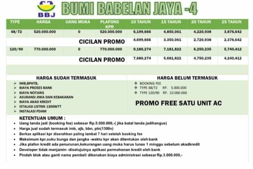 - Harga Rumah Type 48/72: Rp.450.000.000 (Harga Cash Keras)