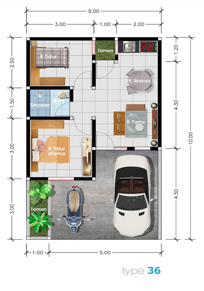 - Luas Bangunan: 36 m2