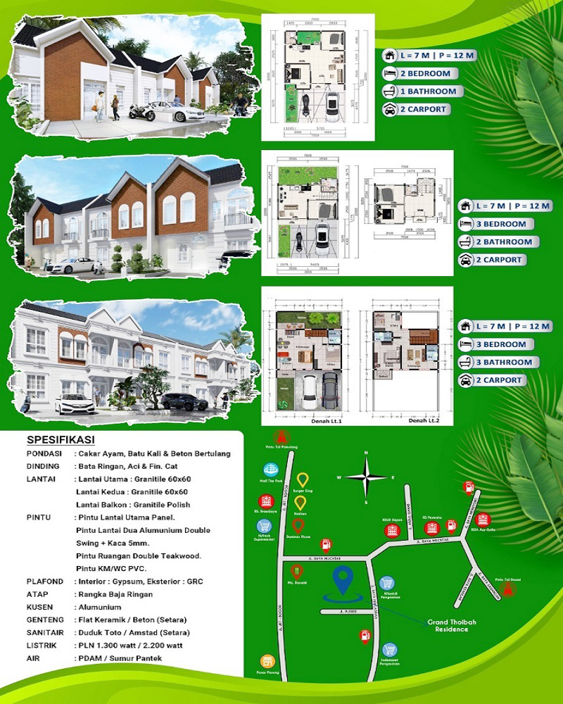 Grand Thoibah Residence Jl. Raya Pengasinan Plered, Kebon Kopi, Kel. Pengasinan, Kec. Sawangan, Kota Depok. Lokasi Rumah strategis dekat kemana2, Lingkungan perumahan tenang aman nyaman dan bebas banjir,