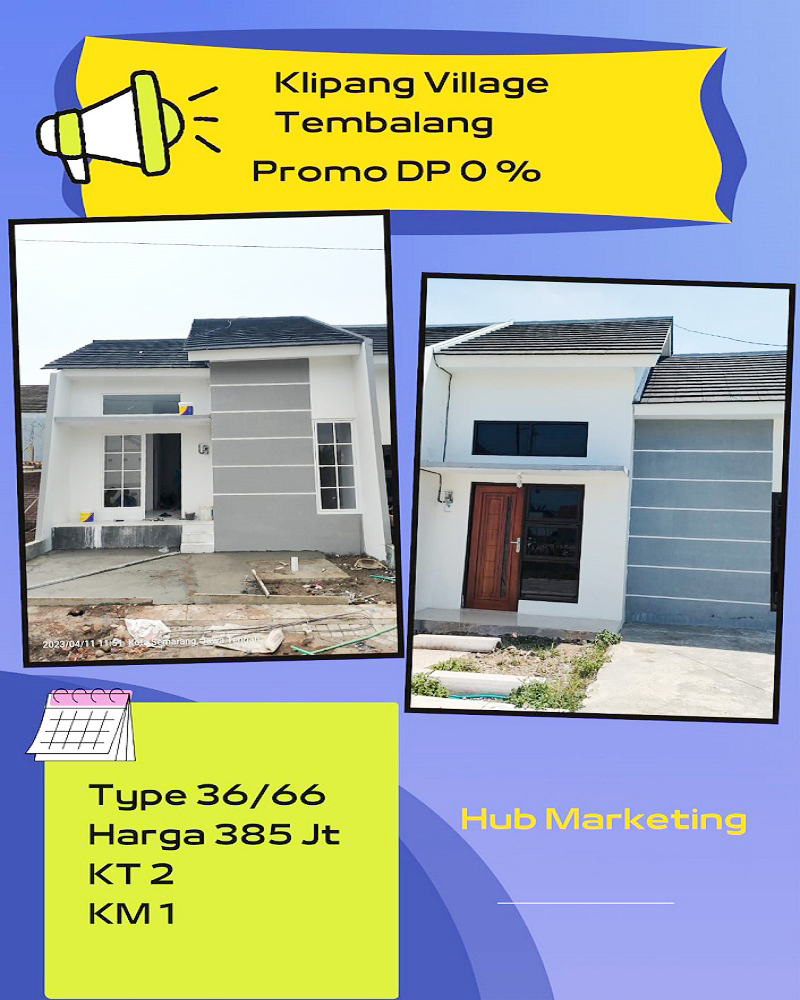 Dijual Rumah Baru (Tanpa DP) di Klipang Village Sendangmulyo Tembalang Semarang Dekat Pasar Meteseh Tembalang, Dekat Pasar Sendangmulyo, Dekat Transmart Majapahit Semarang, Dekat RSUD KRMT Wongsonegoro Tembalang, Dekat Kampus UNIMUS Semarang, Dekat Kampus UNDIP Tembalang, Dekat Universitas STEKOM Semarang.