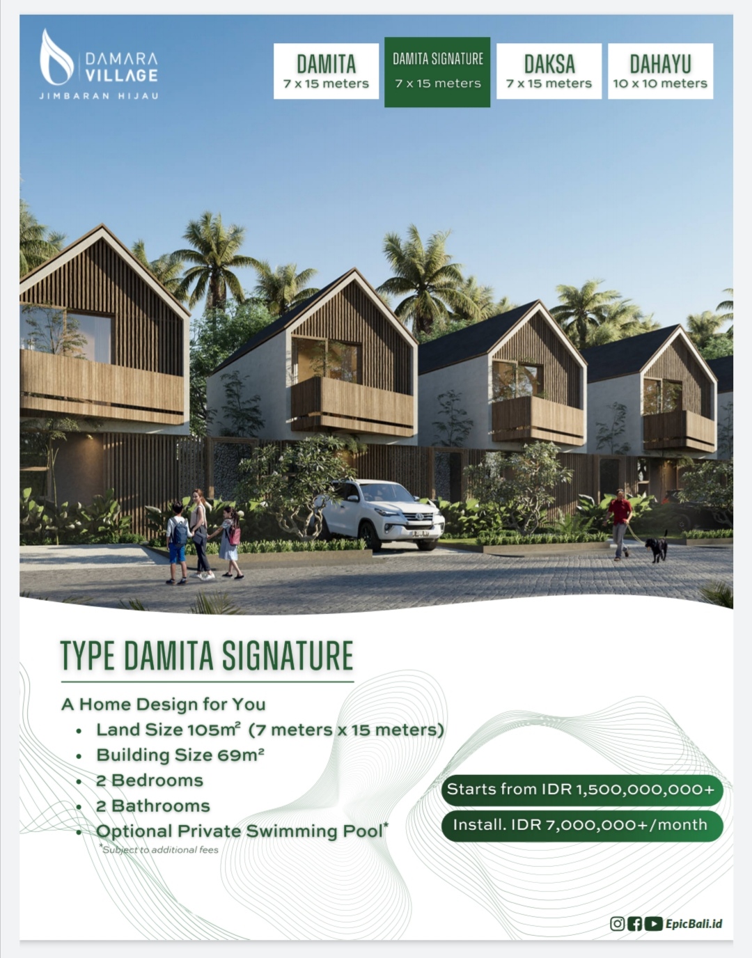 Starting price di 1.5M (type Damita) sampai dengan 2.3M (type Dahayu).