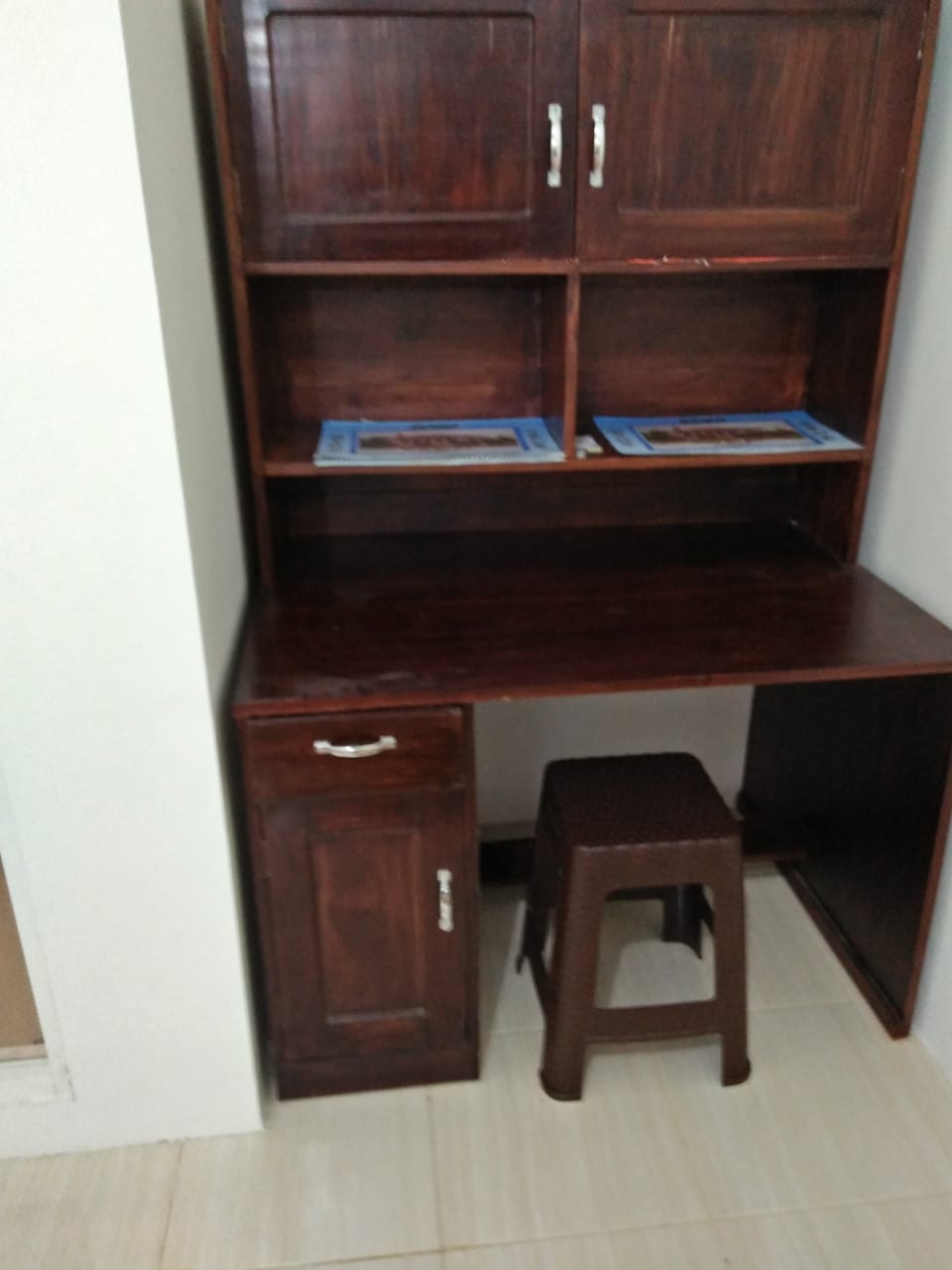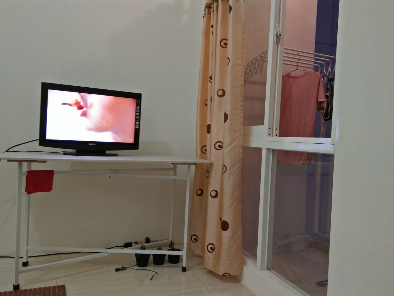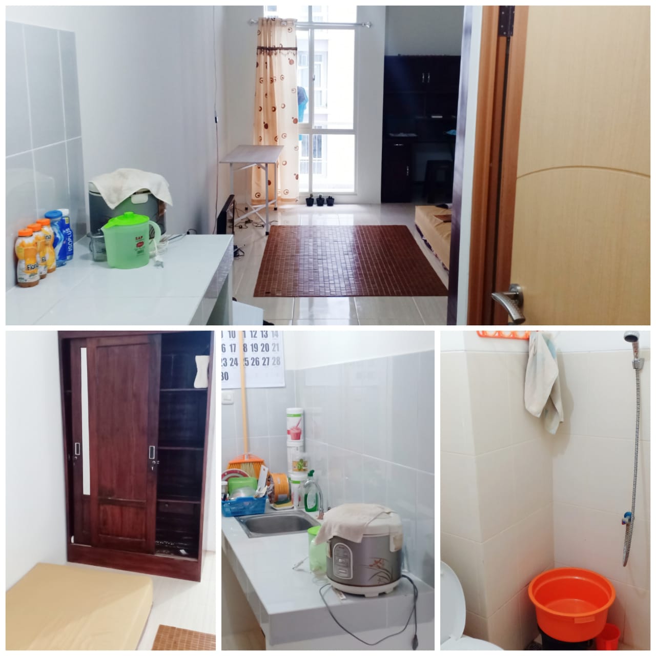 Fasilitas Apartemen : Lemari baju, meja tulis, kasur, tv. Kipas. Rice cooker, teko listrik.