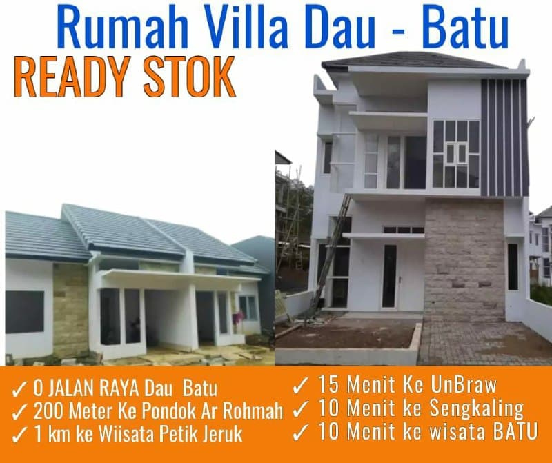 Rumah Villa Kekinian di Kawasan Perkebunan dan Wisata Petik Jeruk Dau dengan View Gunung Arjuno dan Gunung Panderman yang Indah. Lokasi Strategis, berada di poros jalan alternatif Malang - Kota Wisata Batu.