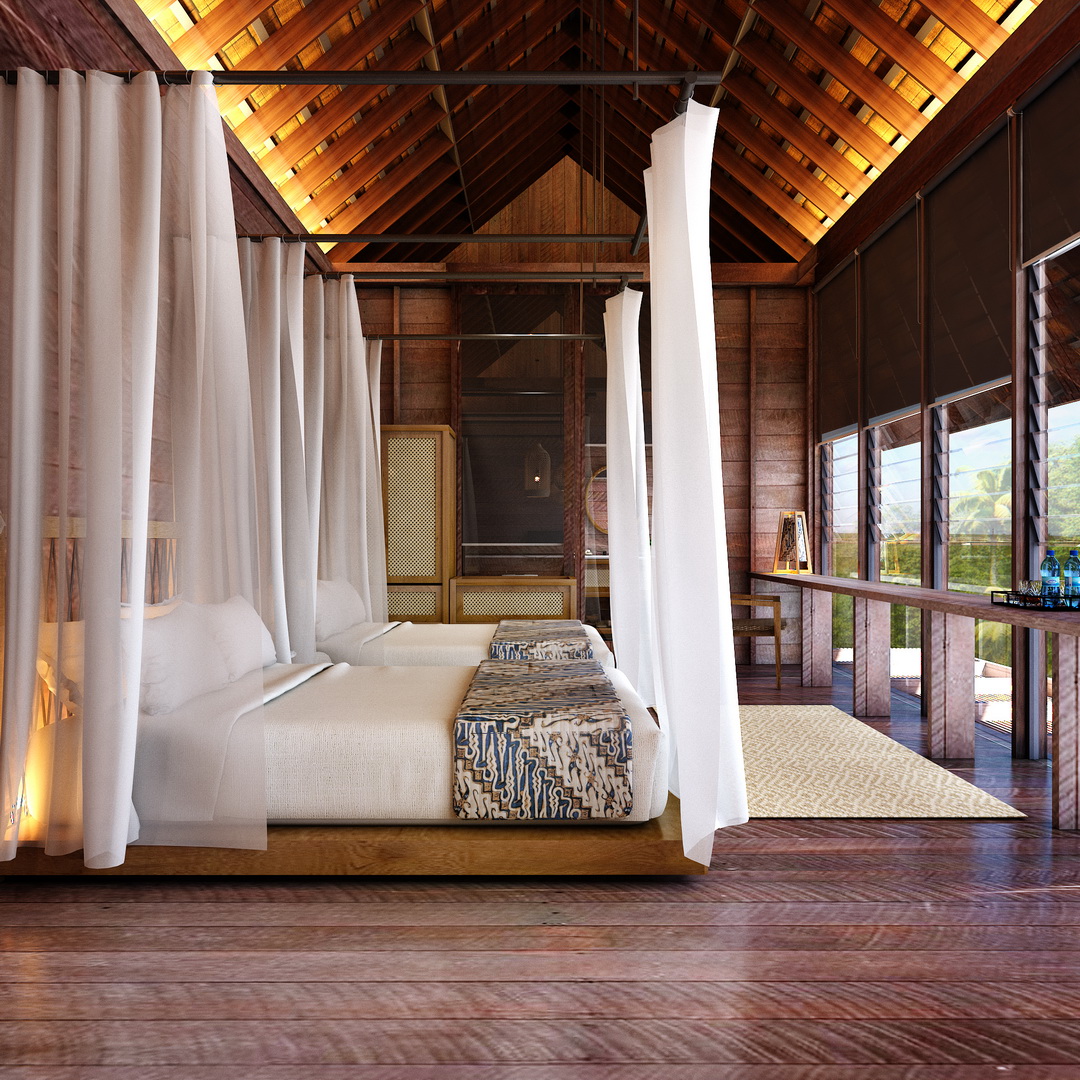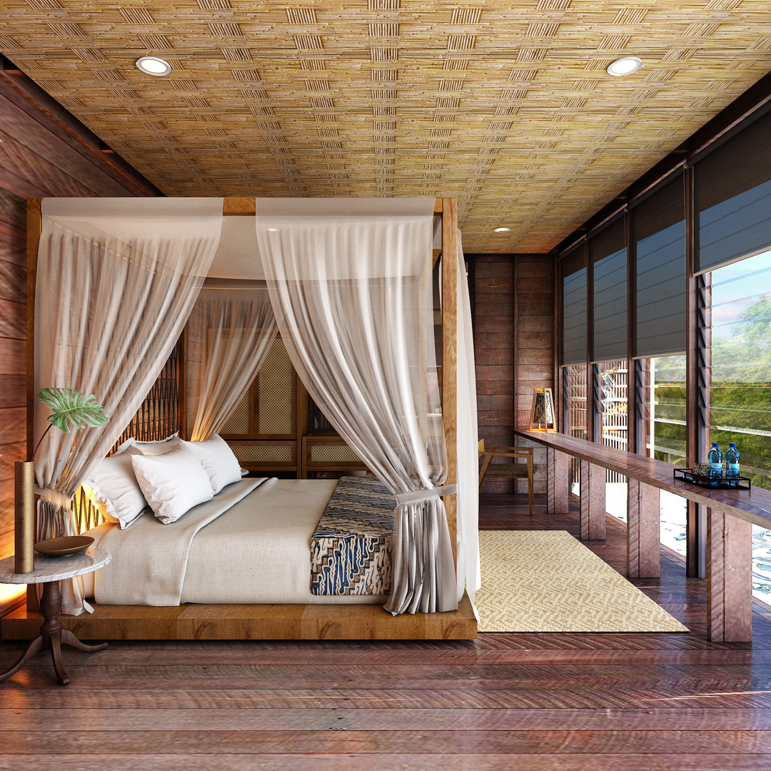 * Desain arsitektur unik terbuat dari kayu ulin yang sangat kuat.