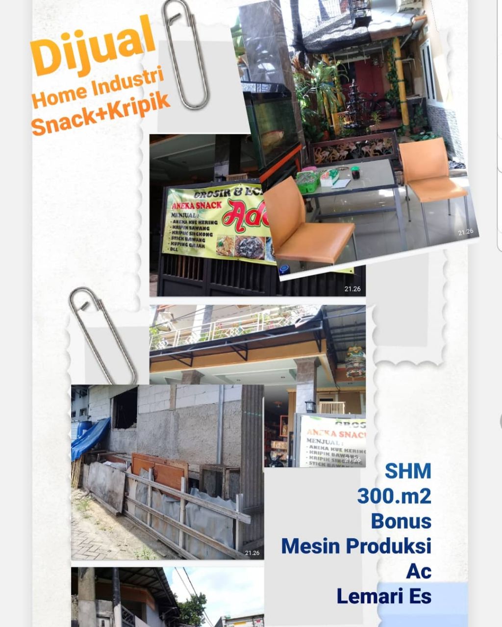 Bismillah R#1119 tgr Dijual Segera Home Industry Snack Kripik SHM KT 3 KM 2 Surat Izin Produksi Lengkap Bunus Mesin Produksi Ac Lemari Es L. 300.M2 Hok Garasi Mobil Tempat motor Ijin Operasi Pabrik Komplit Lokasi PINANG GRIYA PERMAI Cileduk Tangerang Harga 5.5.M Nego