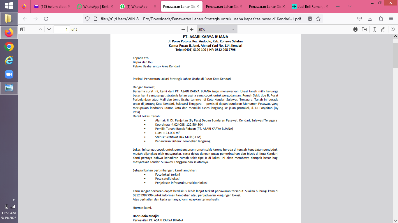 Dijual Lahan Komersil lokasi sangat Strategis di Jalan DI. Panjaitan (ByPass) tepat di Bunderan Pesawat Lepo-lepo ikonik Kota Kendari - Sulawesi Tenggara luas 23000 M2 cocok untuk bangunan Rumah Sakit International, Pusat Perbelanjaan/Mall, Perumahan Cluster Executive, Pergudangan, Perkantoran/Pabrik, Pusat Pendididkan/Kampus/Pesantren dan Properti komersil lainnya. Status SHM dan saat ini merupakan basecamp kontraktor PT.ASARI, depan jalan raya yang sangat luas dan tepat dipusat kota Kendari.