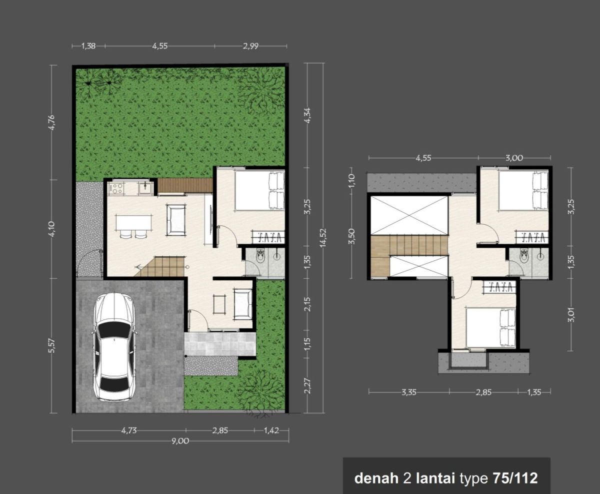 – Luas bangunan 85 & 95 m²