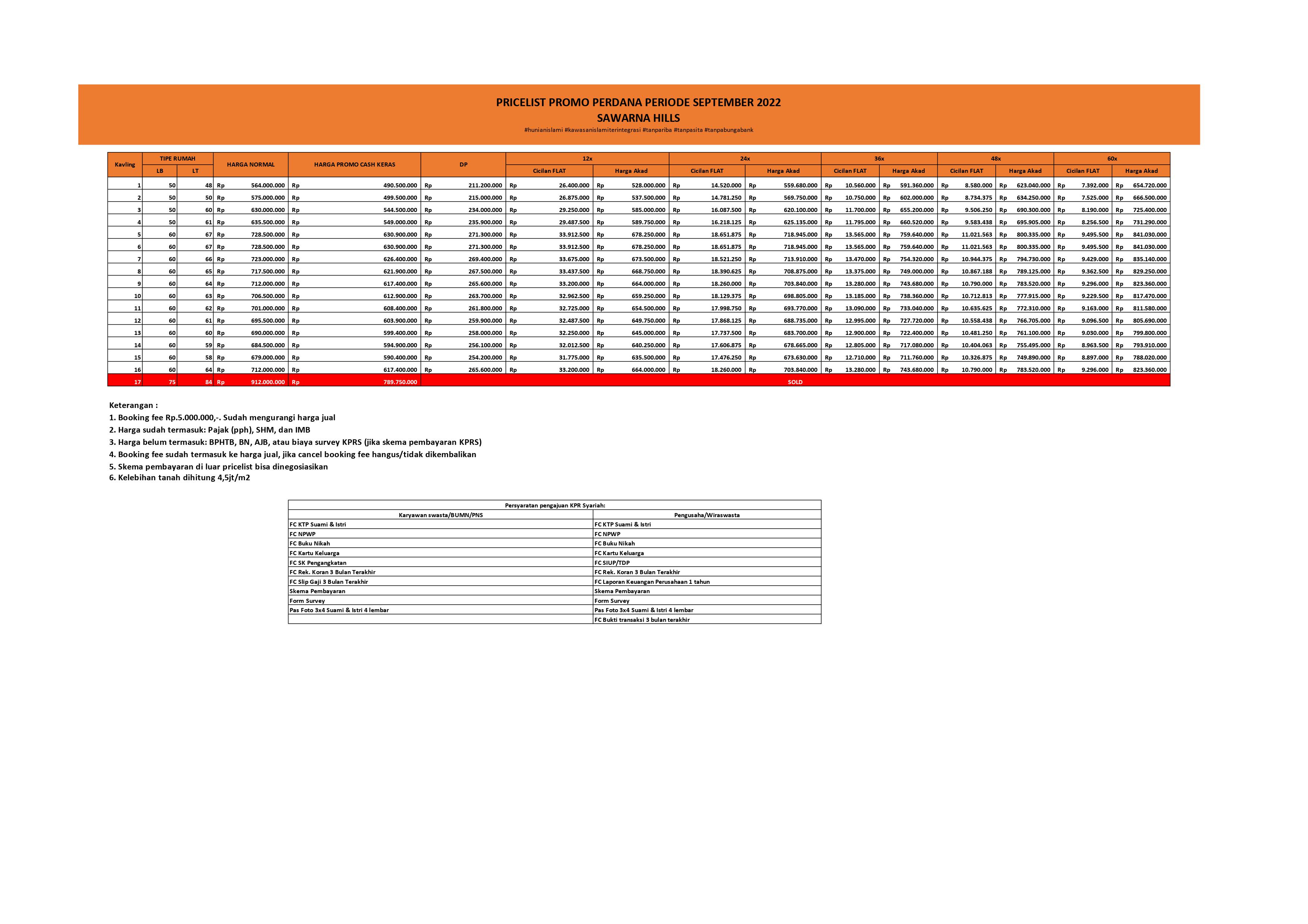 Luas tanah variatif antara 48-67 m2