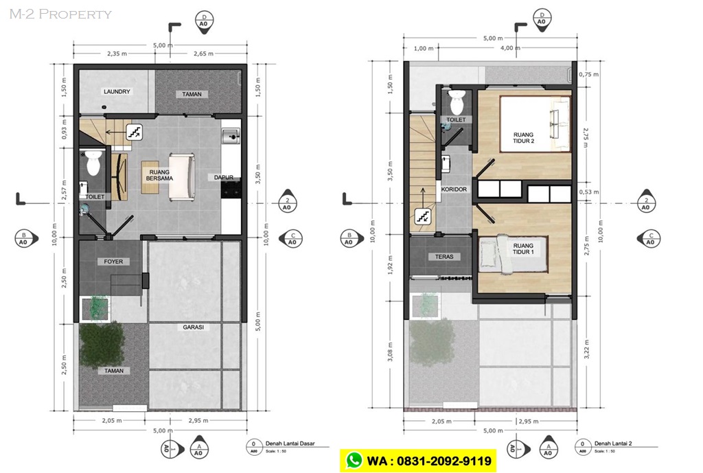 Tipe 50 (2KT, 2KM) - 2 Lantai