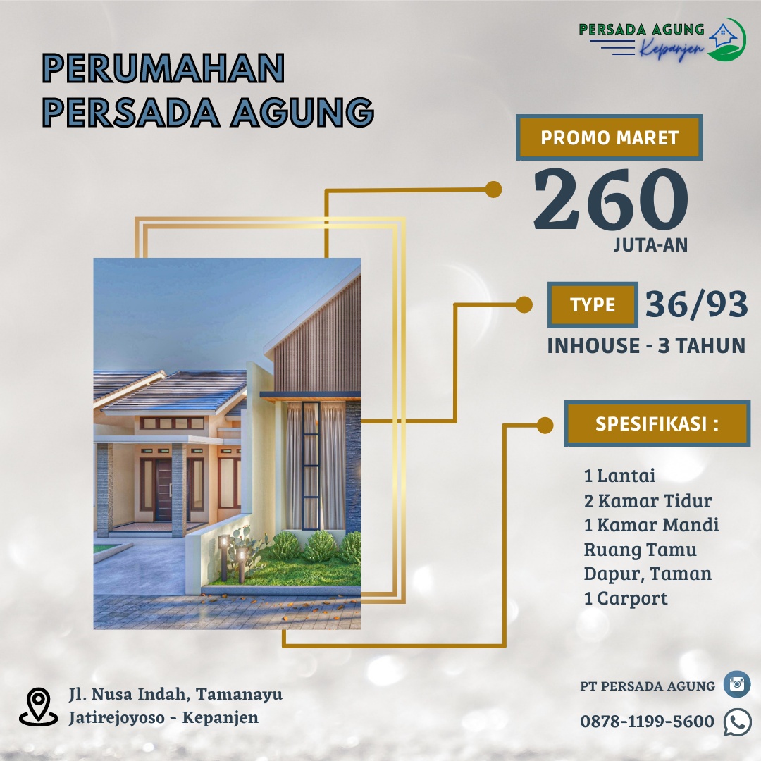 Perumahan Persada Agung Kepanjen | Jl. Nusa Indah Tamanayu-Desa Jatirejoyoso-Kec. Kepanjen, Malang