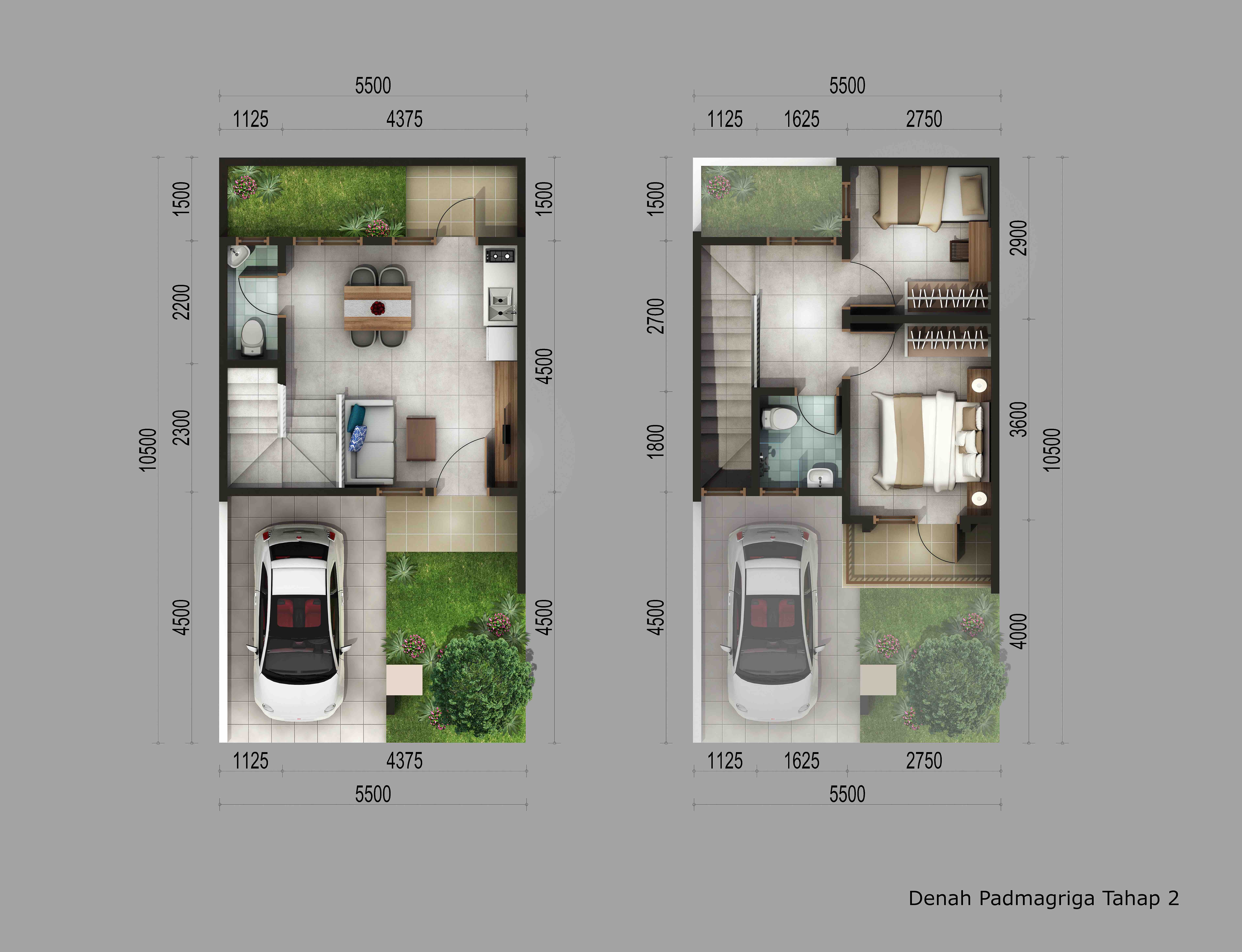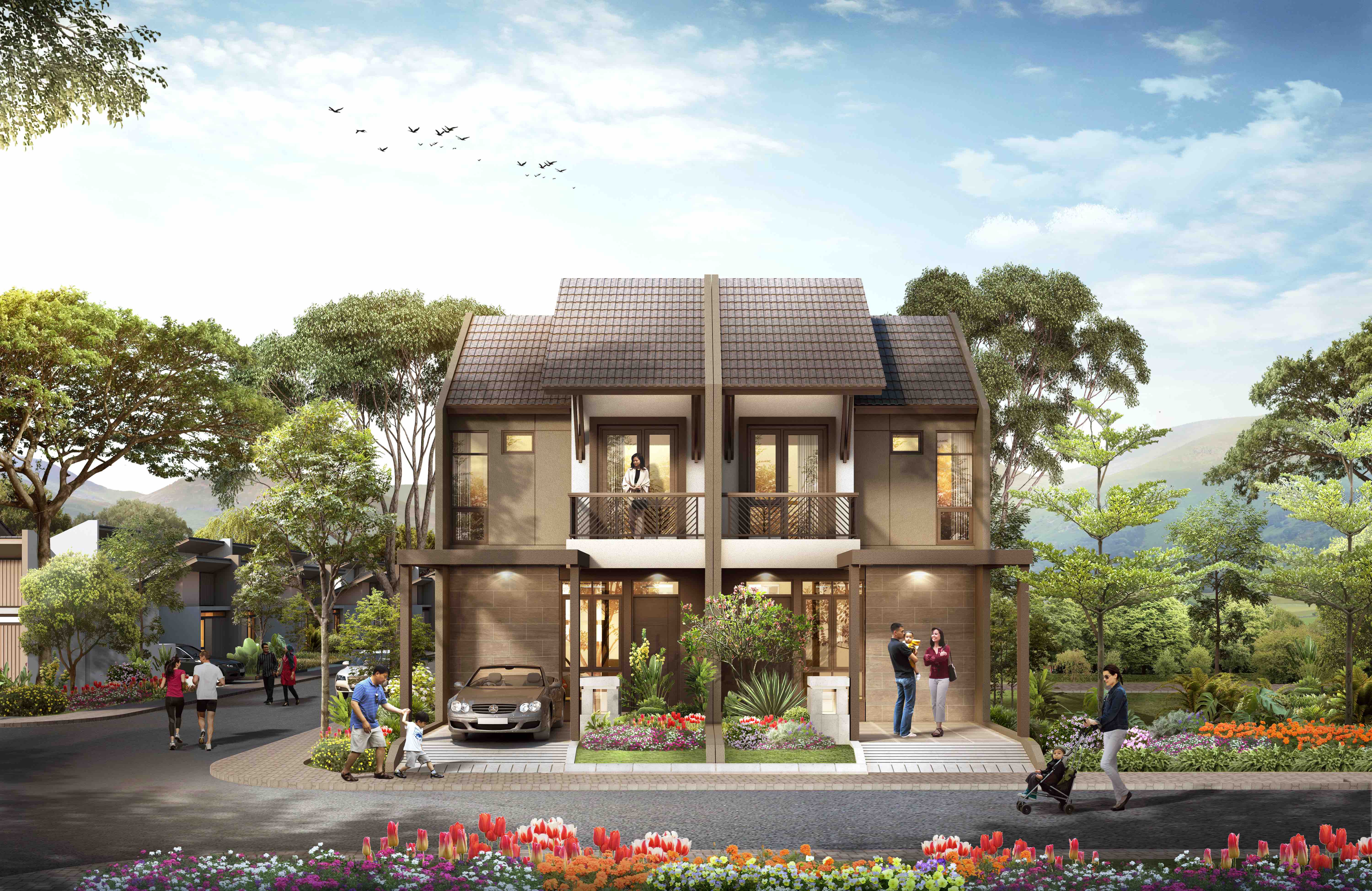 Tipe Akasha merupakan hunian resort dua lantai bergaya modern tropis di dalam private cluster kawasan Podomoro Park Bandung.