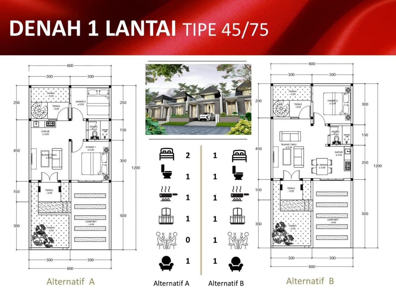 Luas Bangunan 45 m²