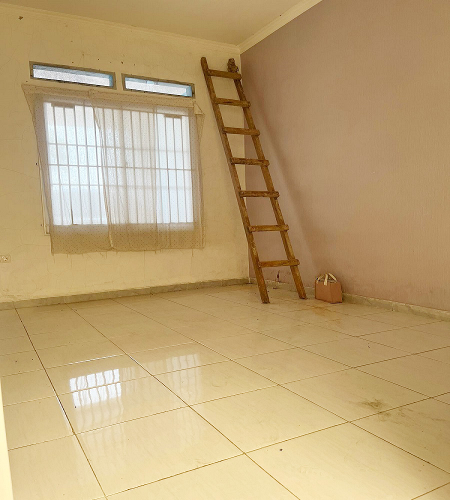 2 kamar tidur, 1 kamar mandi, dapur, ruang tamu, carport, taman