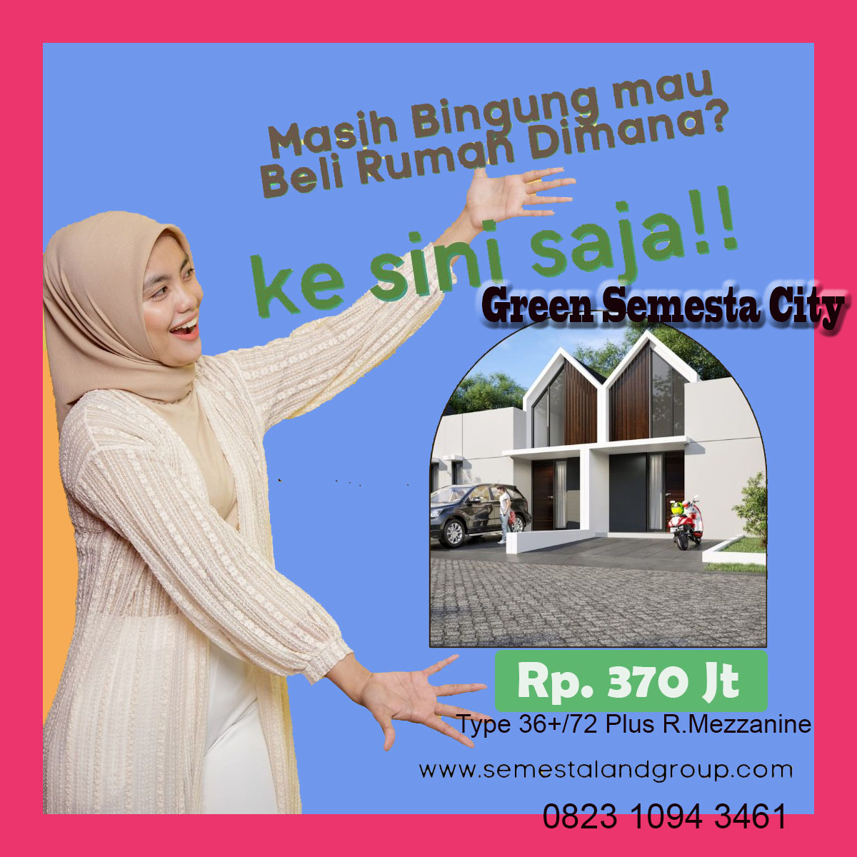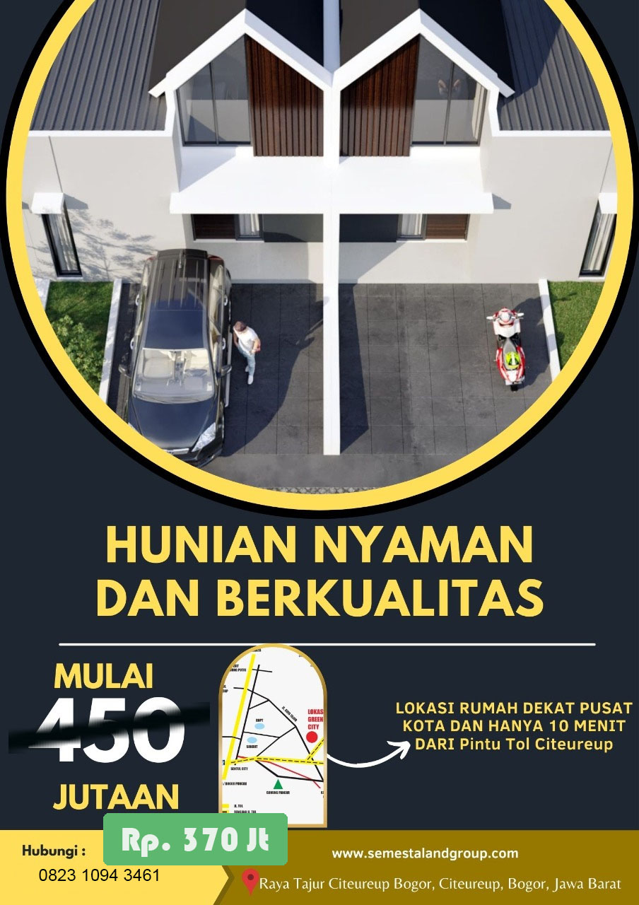 Promo spesial penuh berkah dan ceria, Green Semesta City booking 2jt, Green Semesta City. menawarkan perumahan yang yang green house dengan pemandangan pegunungan dilokasi yang sangat strategis, type 42/72 dengan bonus lantai mezzanine , dengan harga Rp. 370jt hanya untuk 5 unit , cukup booking 2jt.