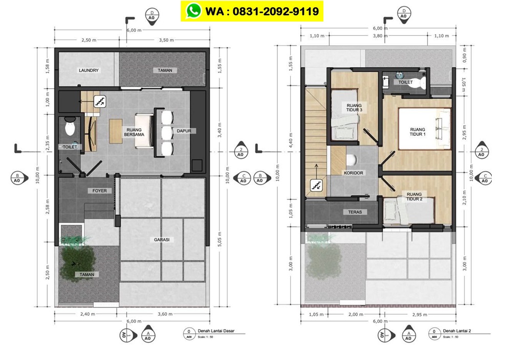 Tipe 60 (3KT, 2KM) - 2 Lantai