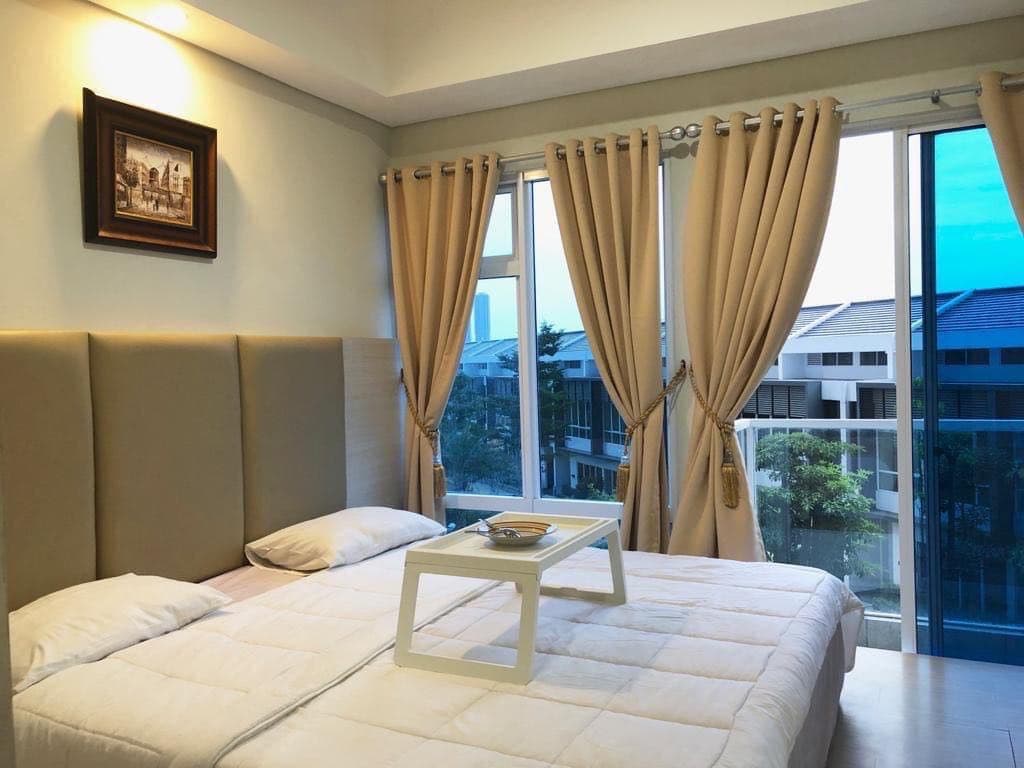 Disewakan bulanan, 3 bulan, 6 bulan dan tahunan Apartemen Studio Room Puri Mansion Tower Amethyst unit 02 G1 dengan view kolam renang.