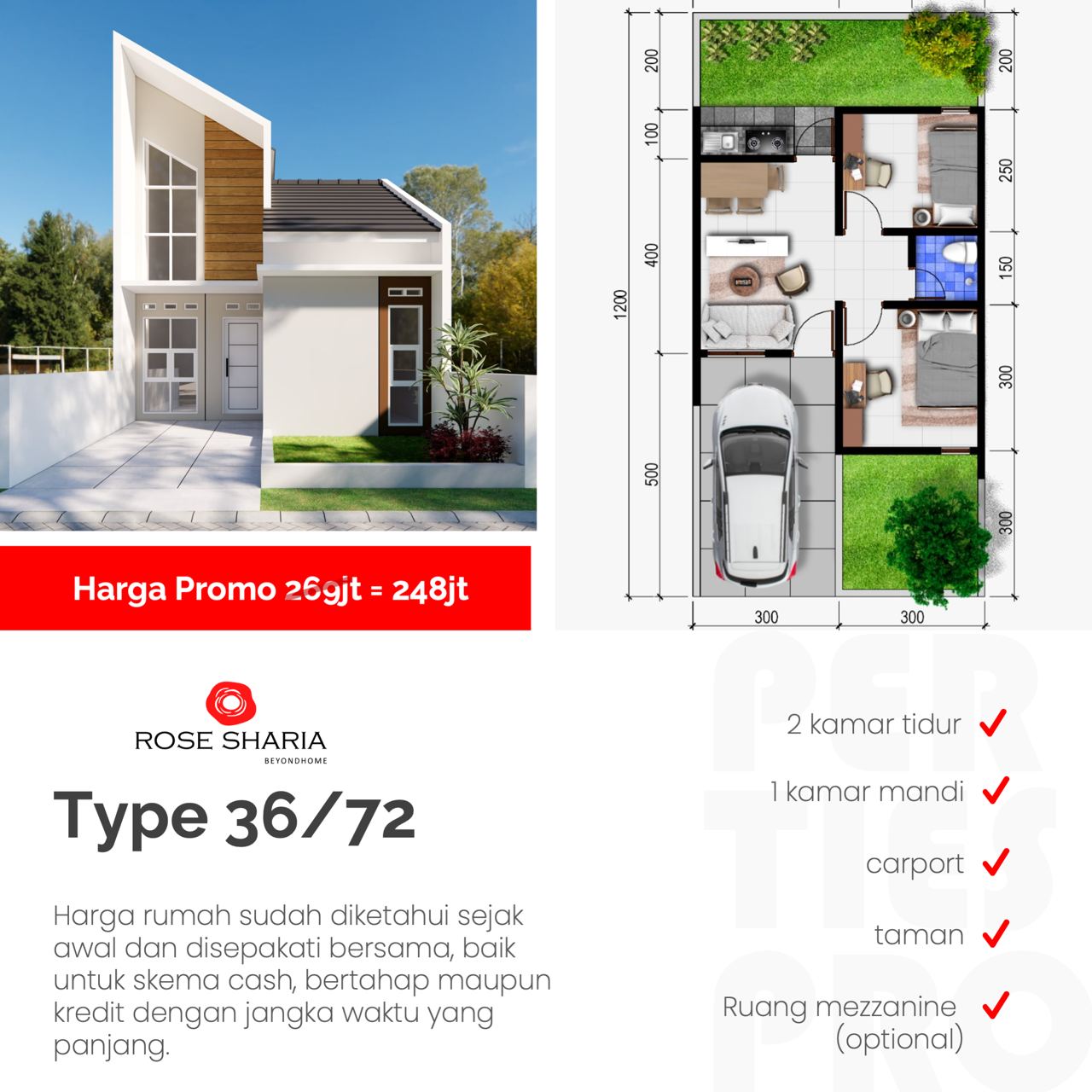 Kapan lagi punya rumah dengan harga terjangkau, bebas riba sita dan denda, jauh dari ribet, namun fasilitas lengkap seperti ini