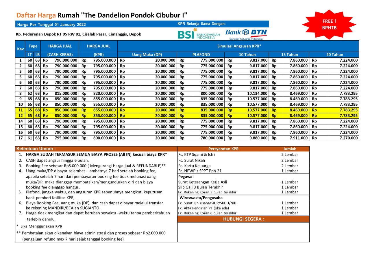 [Note: Harga belum termasuk biaya KPR]
