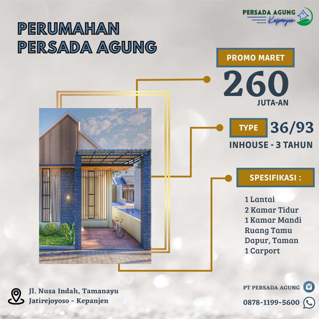Perumahan Persada Agung Kepanjen | Jl. Nusa Indah Tamanayu-Desa Jatirejoyoso-Kec. Kepanjen, Malang