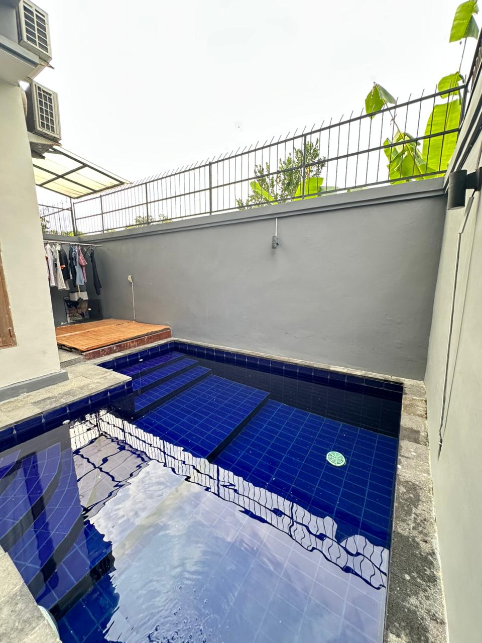Hunian modern 2 lantai dengan desain elegan, sudah fully furnished dan memiliki kolam pribadi.