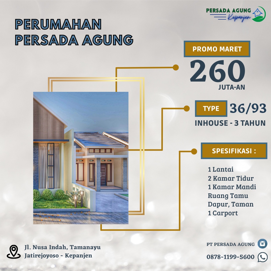 Perumahan Persada Agung Kepanjen | Jl. Nusa Indah Tamanayu-Desa Jatirejoyoso-Kec. Kepanjen, Malang