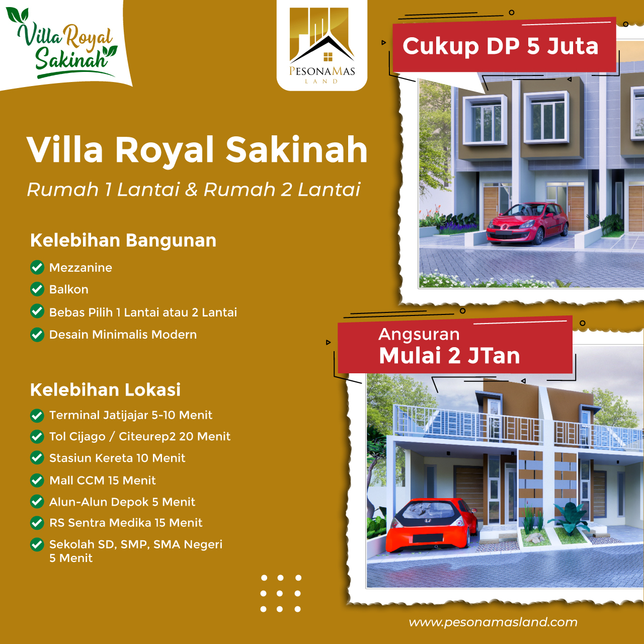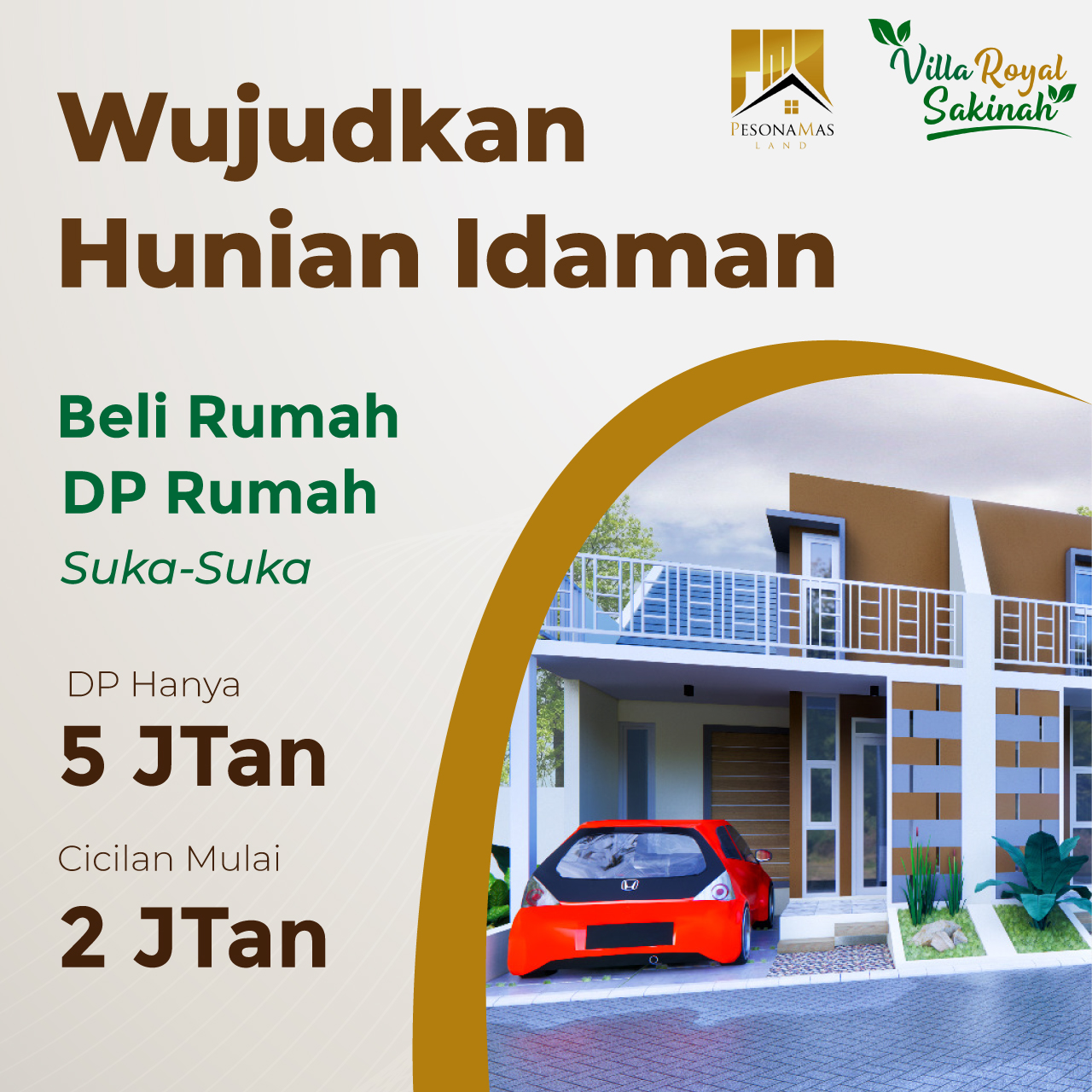 Villa Royal Sakinah Hadir dengan Rumah 2 Lantai dengan DP Hanya 5 Jtan sudah free all Biaya.