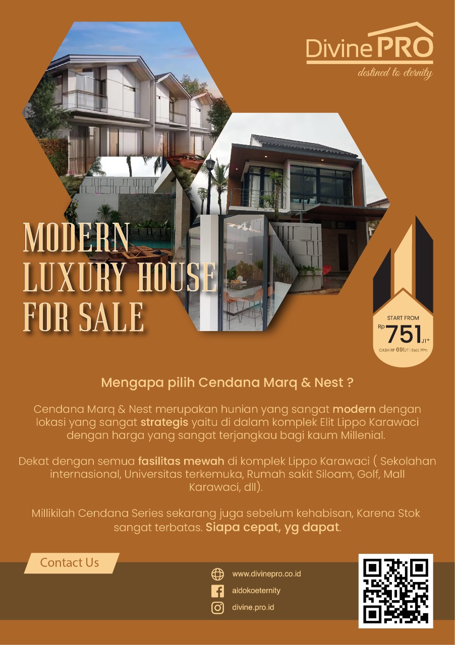 Cendana Marq , Nest & Brava,Hunian Modern di dalam komplek Elit Lippo Karawaci,Harga Sangat Terjangkau Bagi Kaum Millenial.