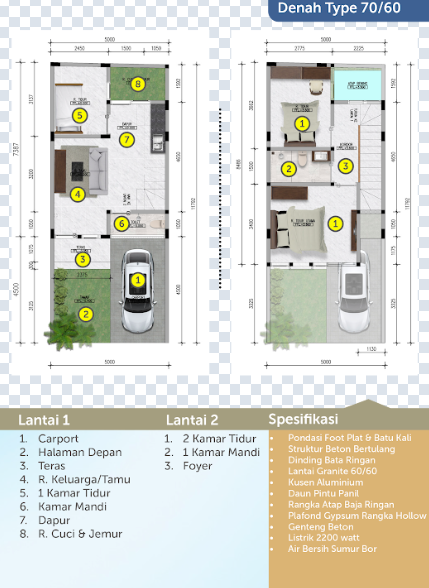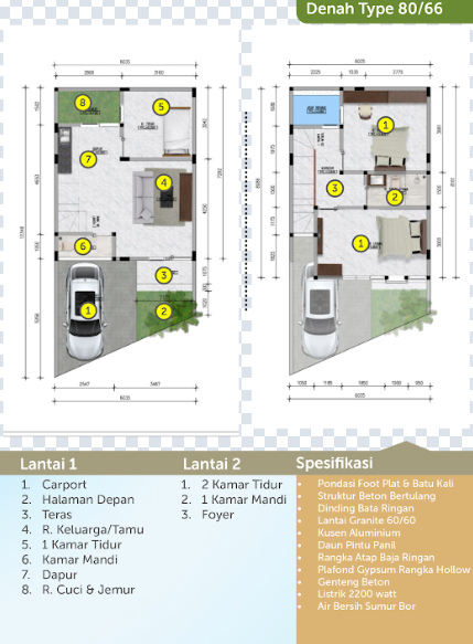Luas Bangunan Tersedia: 80 m² & 70 m²