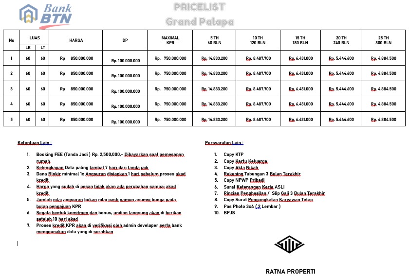 DP 100 juta Max KPR 750 juta